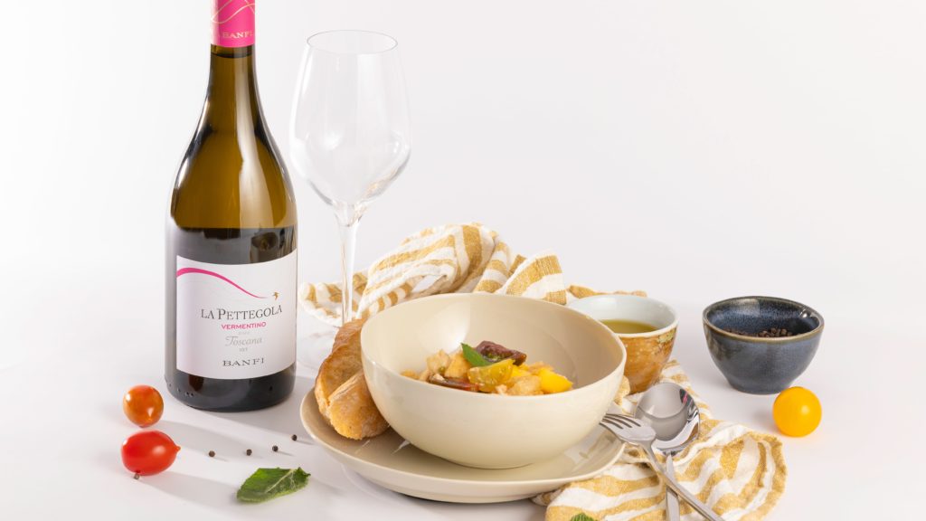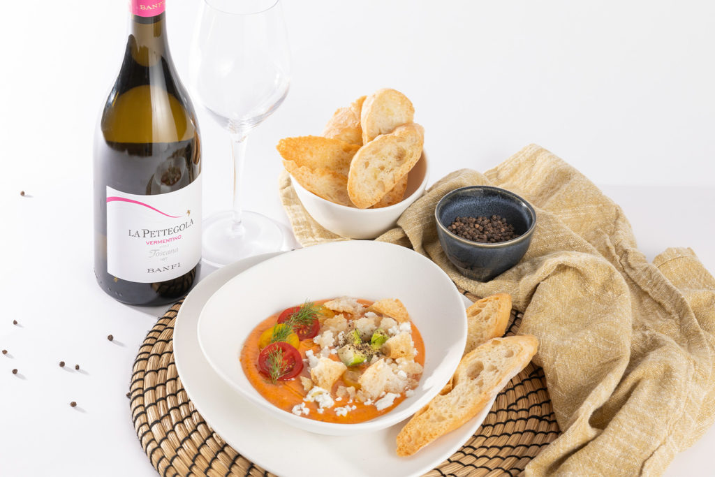 Crostoni di pane toscano con verdure di stagione e crema di feta