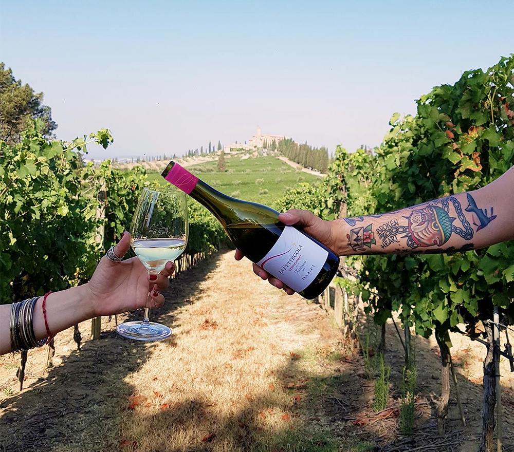 La Pettegola è un Vermentino color giallo paglierino con riflessi verdolini. Al naso esprime una bella intensità aromatica, si avvertono sentori di agrumi, fiori bianchi e frutta tropicale.