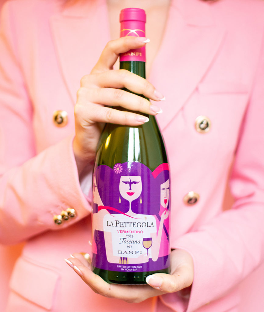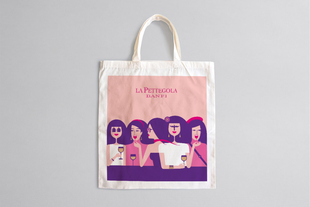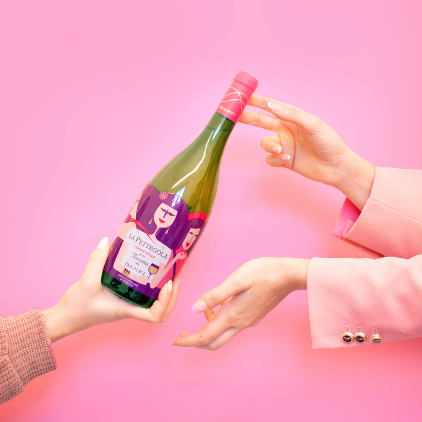 Non avevo mai creato l’etichetta di un vino, né lavorato con la realtà aumentata, ma le sfide come quella che mi ha proposto Banfi sono quelle che mi appassionano di più. Ho voluto coniugare il mio stile con il mondo de La Pettegola, immaginando un incontro tra donne intente a rivelarsi passioni, sogni e segreti di fronte a un calice di vino. Le loro emozioni, così come i dettagli de La Pettegola, sono come “nascoste in piena vista”: lo stupore che si crea nel guardare più da vicino è ciò che rende il design e la vita, in fondo, così speciali.